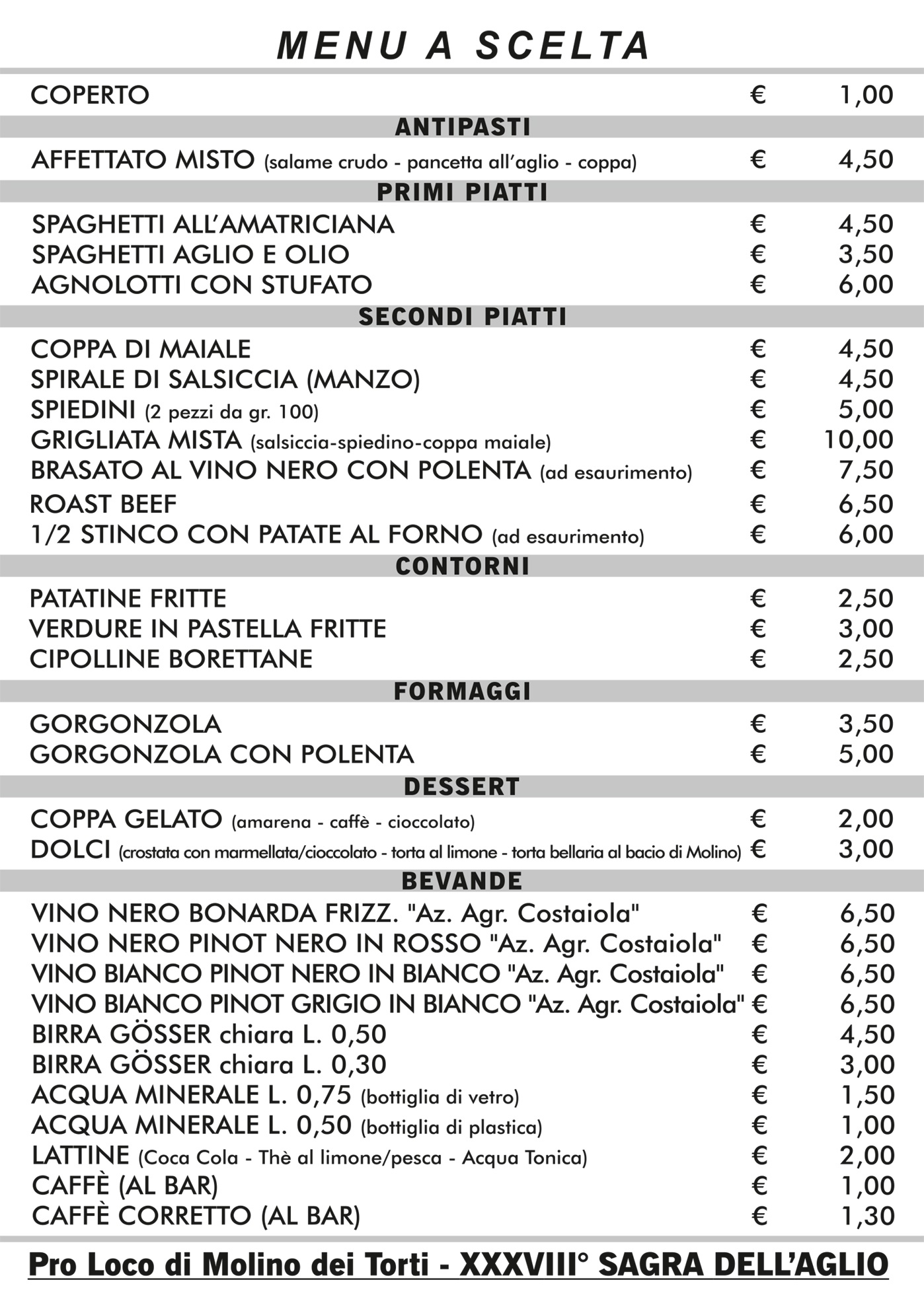 SAGRA MERCATO DELL'AGLIO, PROGRAMMA MENU' RISTORAZIONE