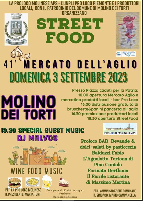 | Organizzazione | PRO LOCO MOLINESE APS (CON PATROCINIO DEL COMUNE DI MOLINO DEI TORTI) |