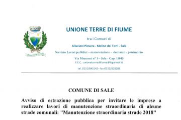 Comune di Sale - Avviso di estrazione pubblica per invitare le imprese