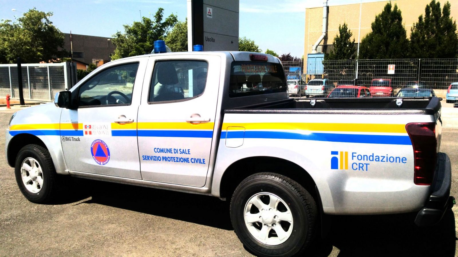 Il nuovo mezzo speciale ISUZU D-Max Crew Satellite 4x4 Pick-Up con allestimento speciale Protezione Civile Regione Piemonte, acquisito dal Comune di Sale per il proprio Gruppo Comunale di Volontari della Protezione Civile, per gli scopi ed i servizi a tutela della popolazione e dei cittadini previsti nel Piano Comunale di Emergenza. L'operazione di acquisizione è stata possibile grazie al contributo concesso dalla Fondazione CRT di Torino nel corso dell’anno 2018.