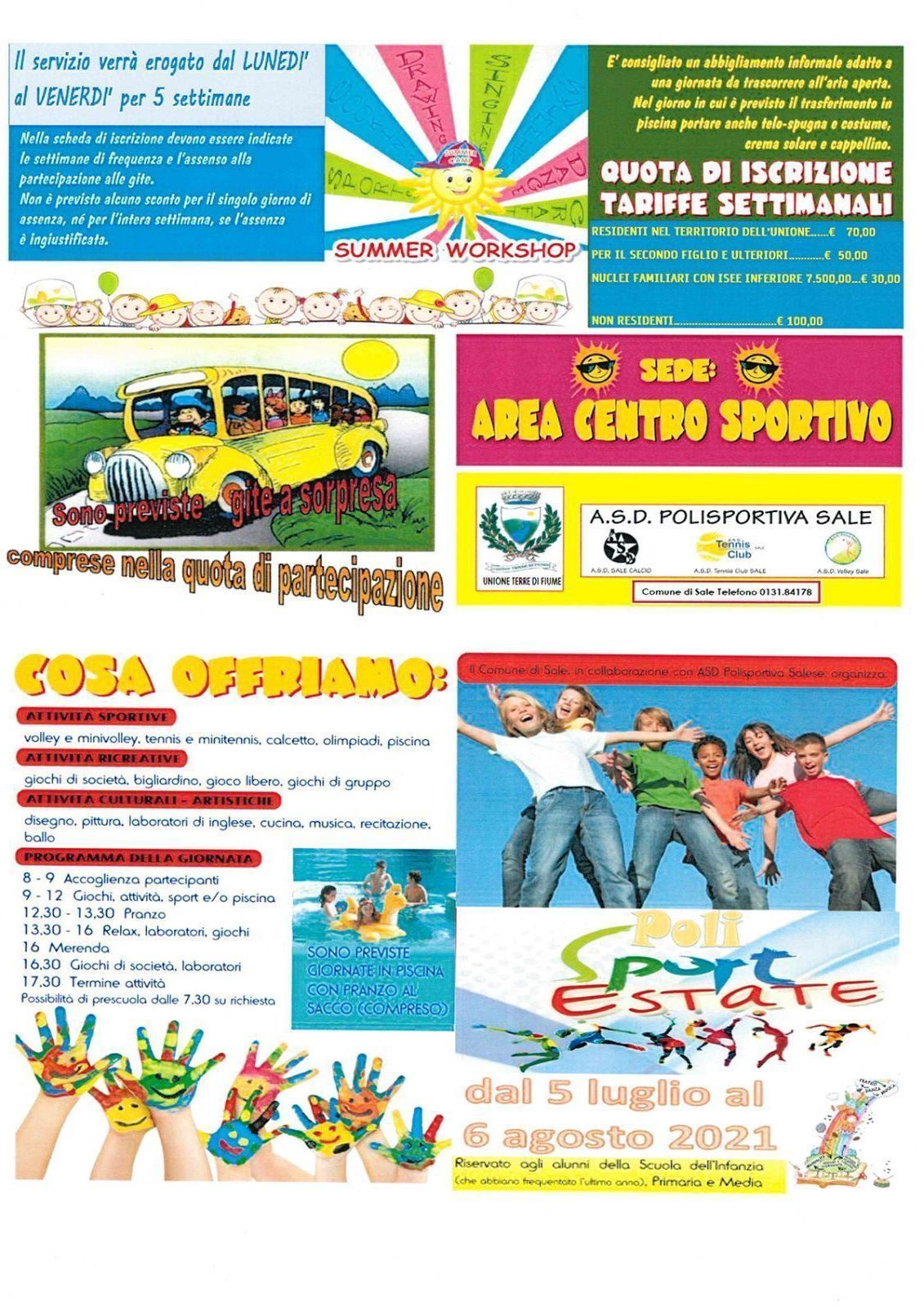 Ritorna il CENTRO ESTIVO organizzato dall'Unione Terre di Fiume in collaborazione con la Polisportiva ASD Sale e la società CIR_FOOD scrl dal 05 Luglio al 6 Agosto p.v. negli spazi delle scuole di Sale, inclusa la Palestra Polivalente ed il Centro Sportivo.