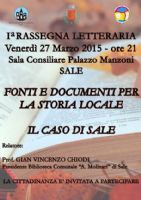 Il primo appuntamento è previsto per venerdì 27 marzo 2015 alle ore 21 presso la Sala Consiliare del Comune di Sale per la conferenza del Prof. Gian Vincenzo Chiodi.